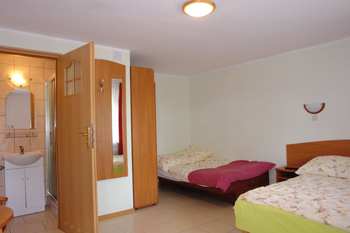 Ok. 600 m od morza. Oferujemy pokoje gościnne 1-, 2-, 3-, 4-osobowe z TV i łazienką oraz 2 studia